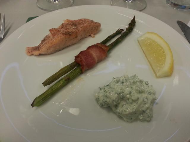 Dampet kold laks med asparges og persilleyoghurt