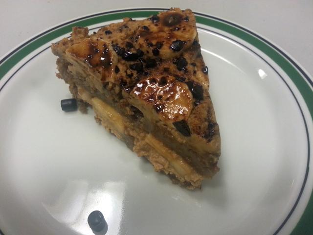 Mascarponen røres op med lakridssirup, og lægges sammen med bananskiverne og lagkagebundene.
