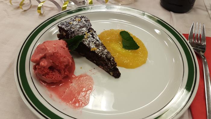 Fransk Chokoladekage med sorbet og Mangopuré