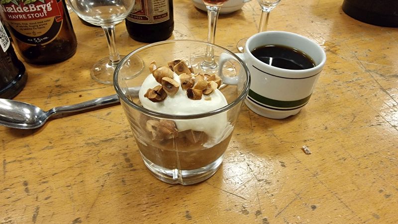 Luksus Æblekage med kaffe-chokoladecreme og ristede hasselnødder