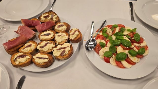 Vi fik idag chips og oliven ellers kan der serveres andre lette forretter som grissini, ost, tørret skinke